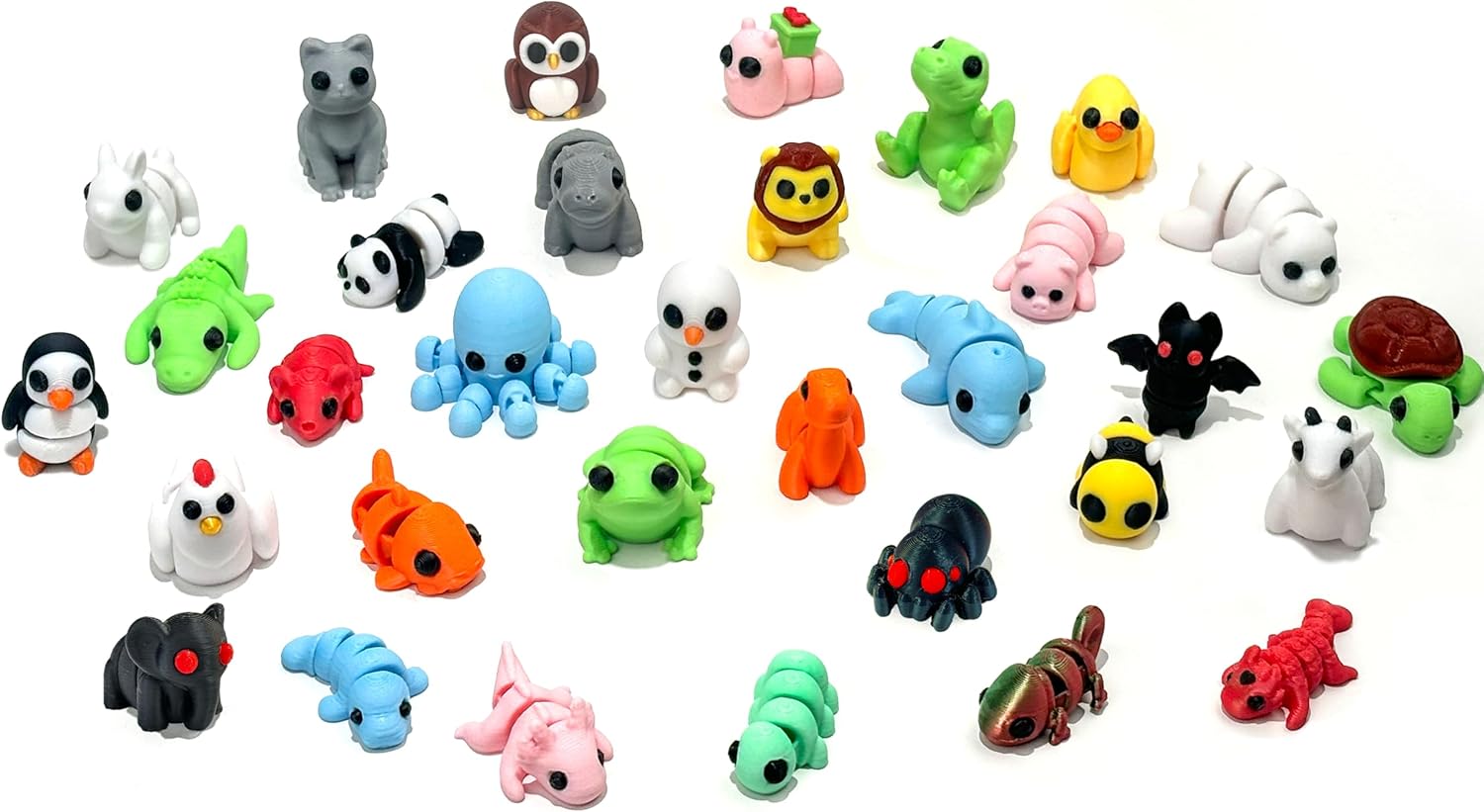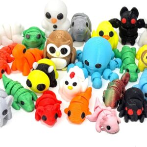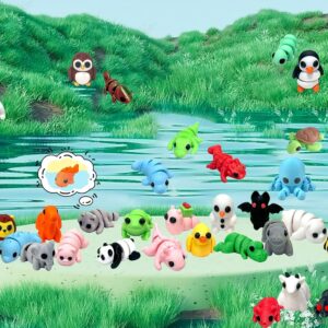 32pcs Mini Animal Figurines Set,3D Printed Articulated Flexible Fidget Toy, Figurines Toy,Cute Animal Toys for Home, Office, Decor