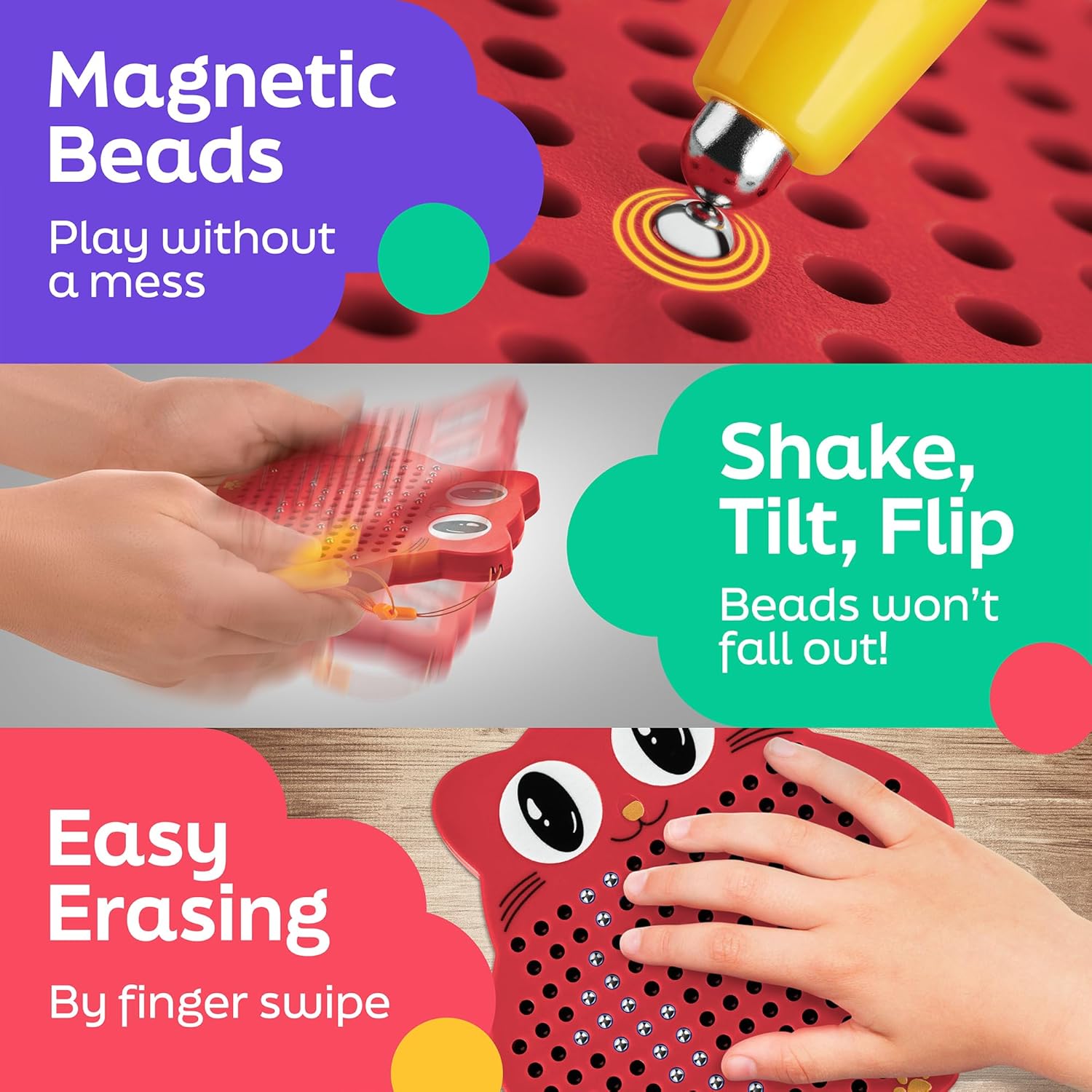 AYNAT FUN Magnetic Drawing Board for Kids & Toddlers with Beads and Magnet Stylus Pen - Magnetic Travel Toy for Airplane & Car Ride Activities for Kids