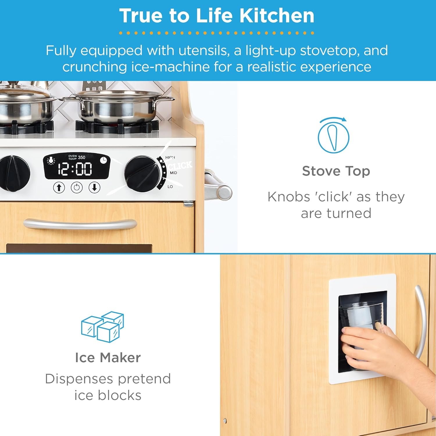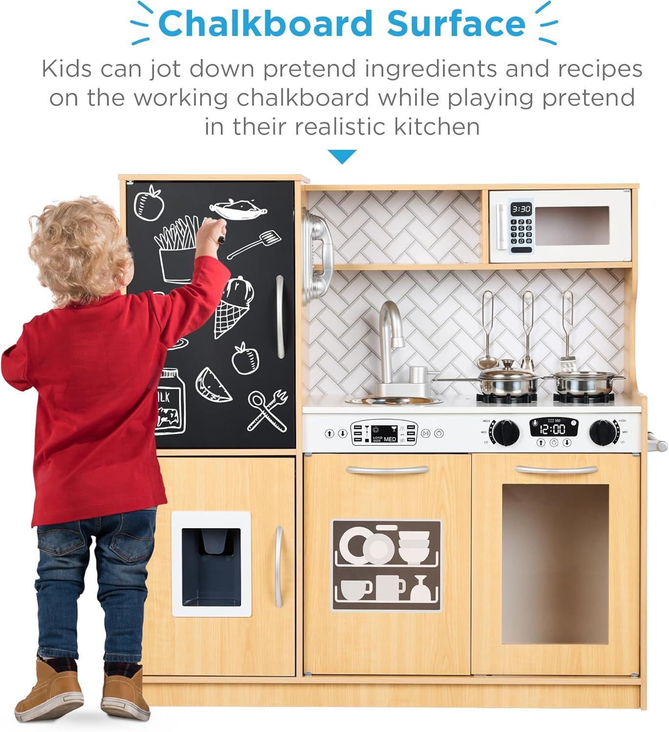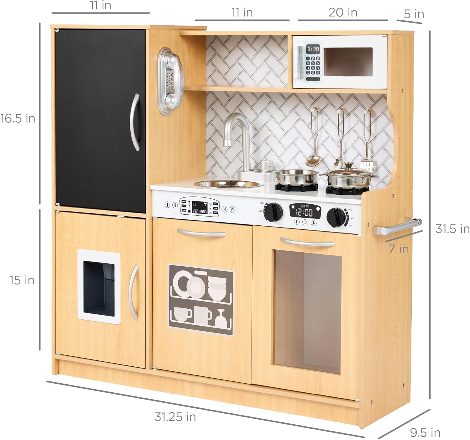 Best Choice Products Pretend Play Kitchen Wooden Toy Set for Kids w\/Realistic Design, Telephone, Utensils, Oven, Microwave, Sink – Natural