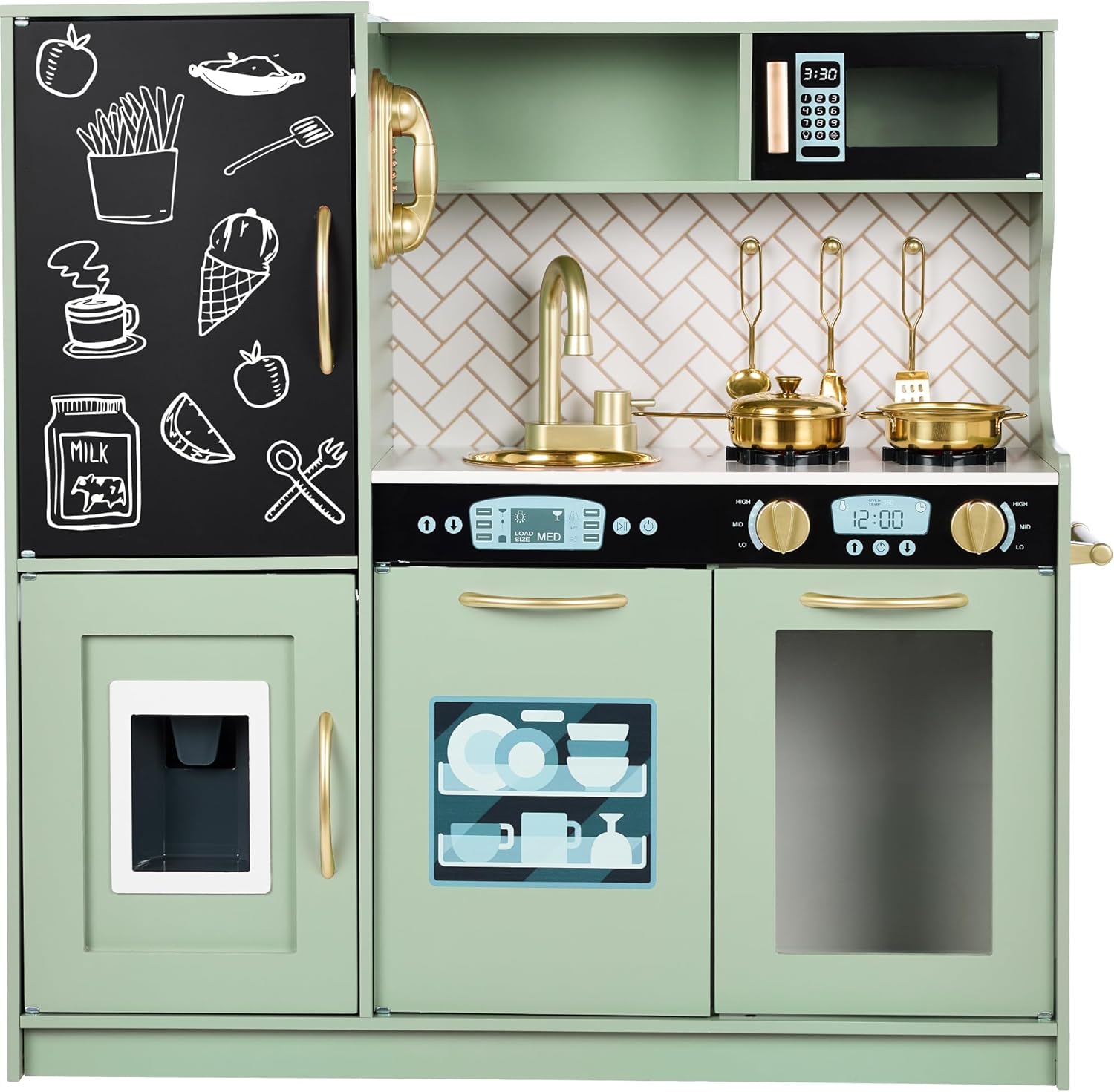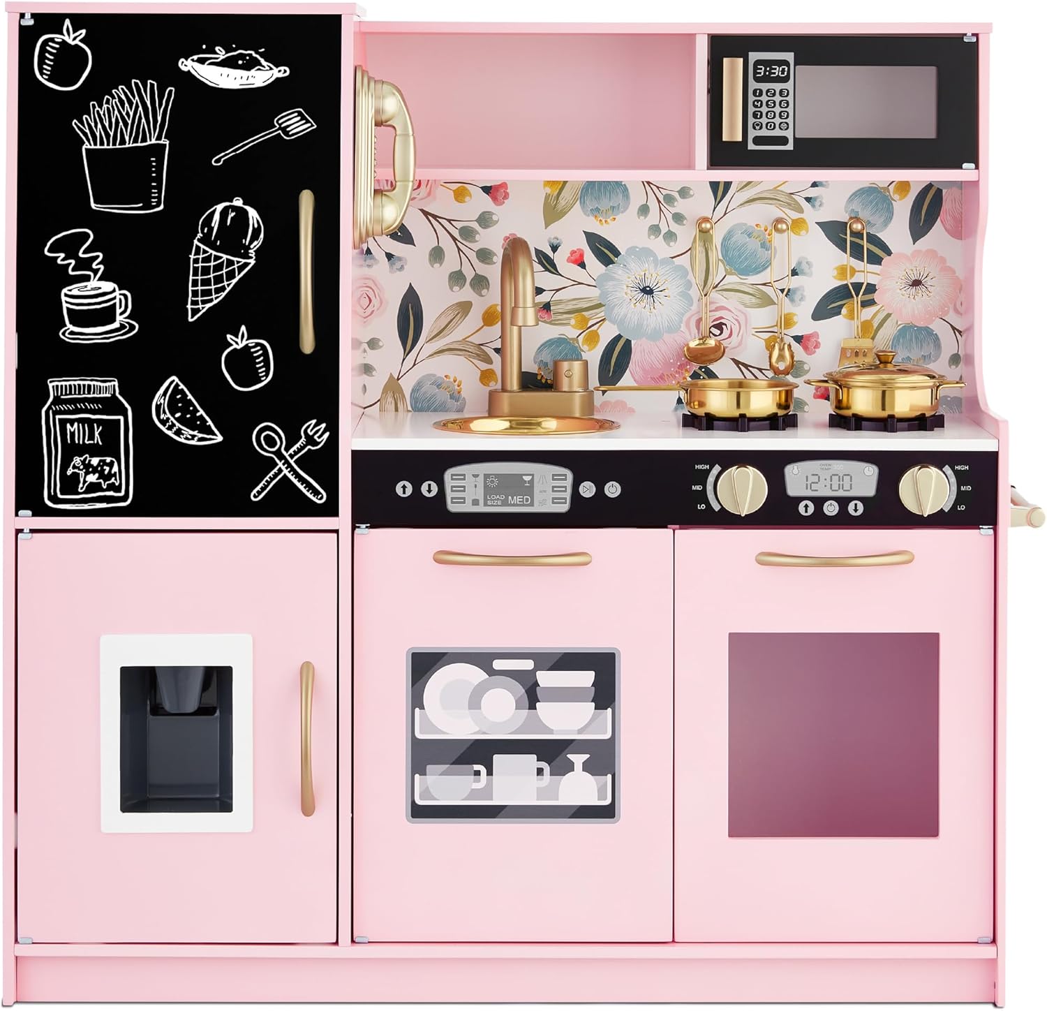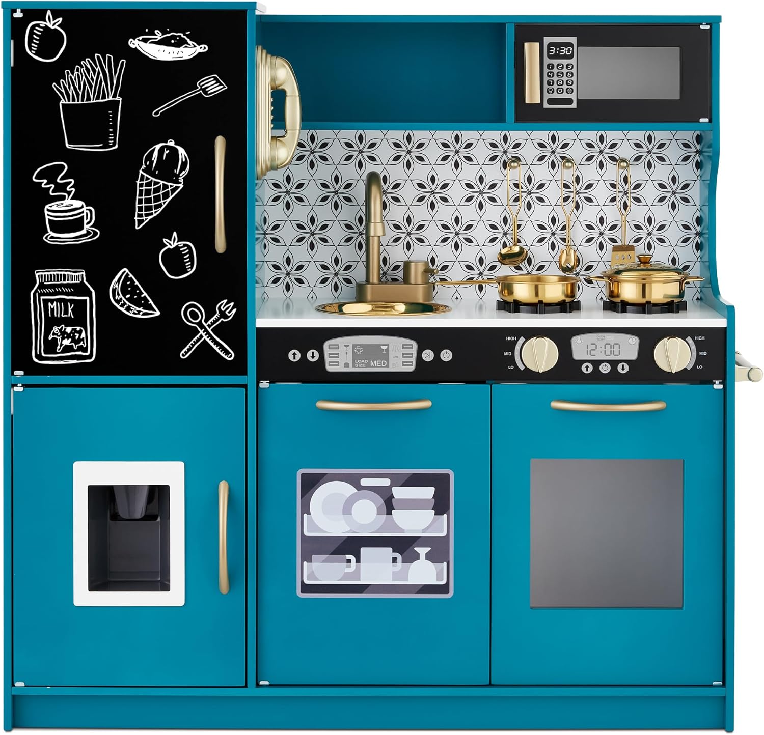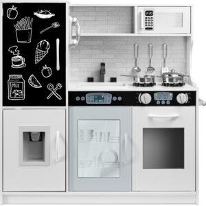 Best Choice Products Pretend Play Kitchen Wooden Toy Set for Kids w\/Realistic Design, Telephone, Utensils, Oven, Microwave, Sink – Natural