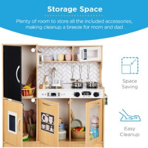 Best Choice Products Pretend Play Kitchen Wooden Toy Set for Kids w\/Realistic Design, Telephone, Utensils, Oven, Microwave, Sink - Natural