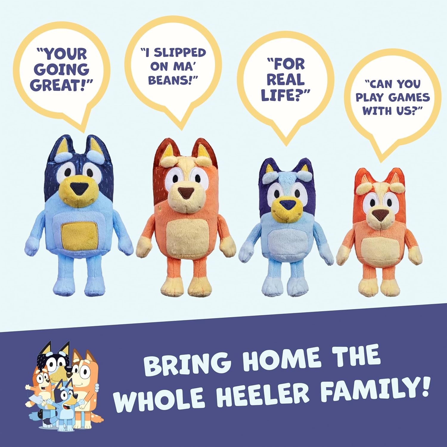 Bluey Sound Effects Talking Bingo Plush Toy, 13\u201D Soft Bingo Toy, Interactive Stuffed Animal with 9 Different Phrases, Musical Toys for Kids