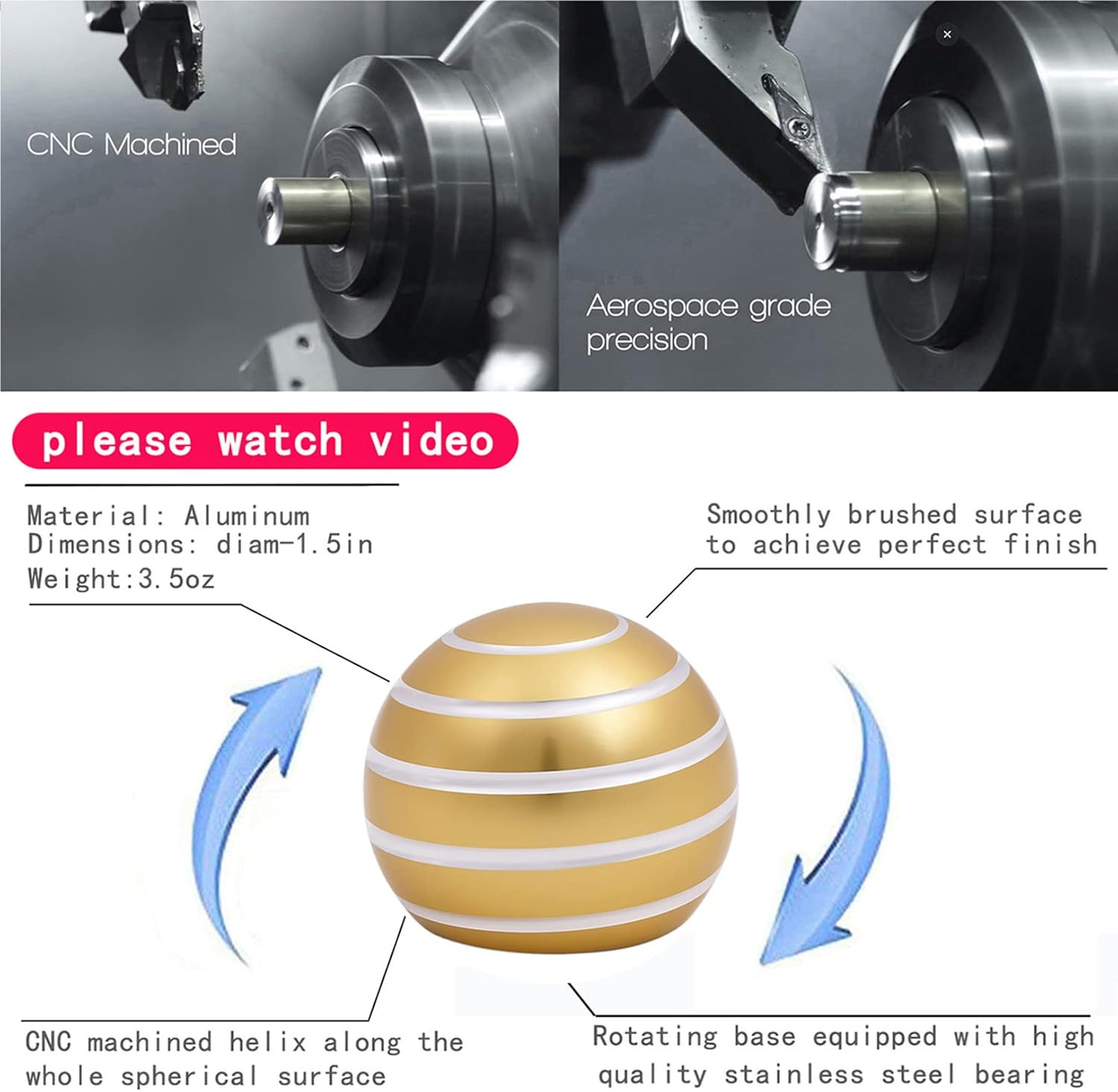 - Kinetic Desk Toys: 1.5" Size, Aluminum metal and machined by CNC, With high-quality bearing.