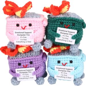 Emotional Support Crochet Dumpster Fire with Positive Card Cute Room Decor Knitted Toys Funny Crochet Support Buddies Gifts for Friends (Green&Blue&Red)