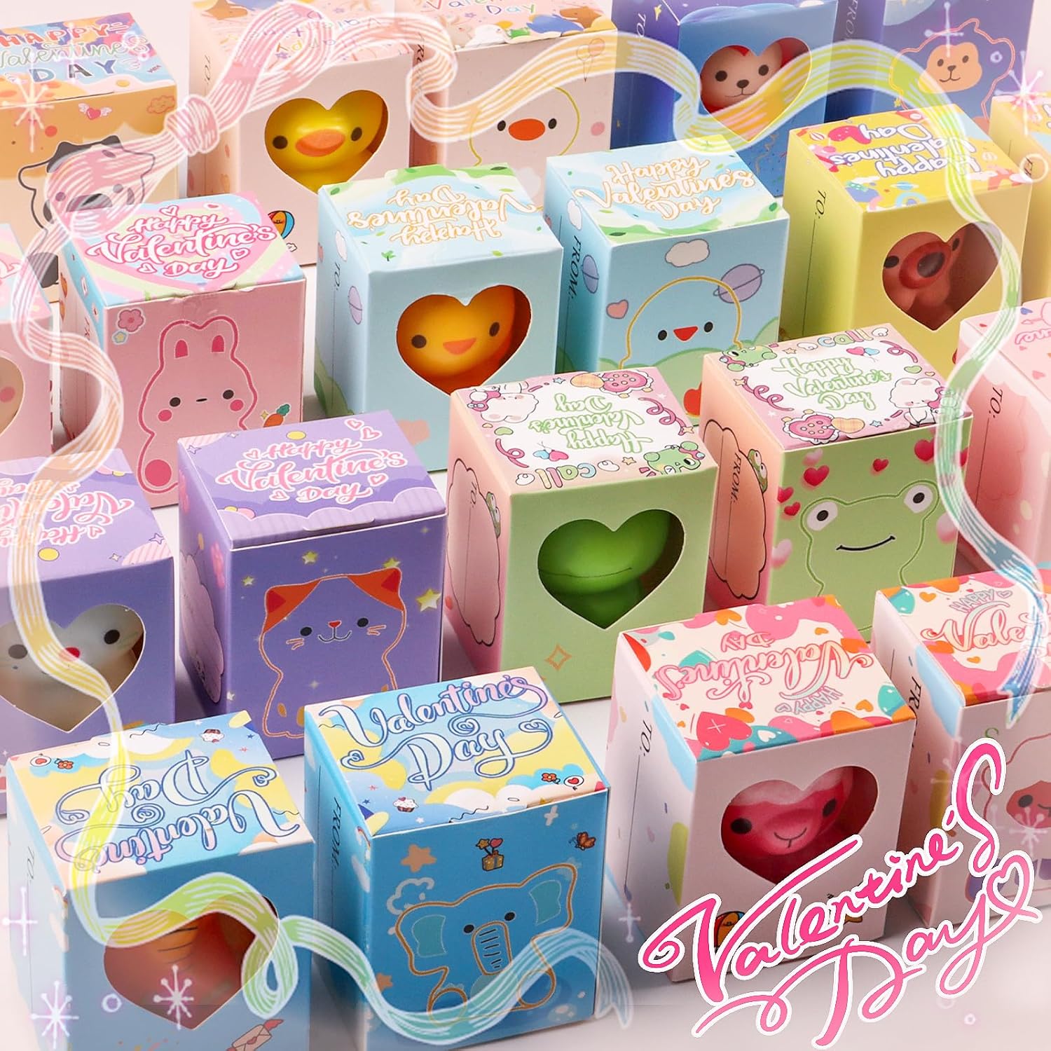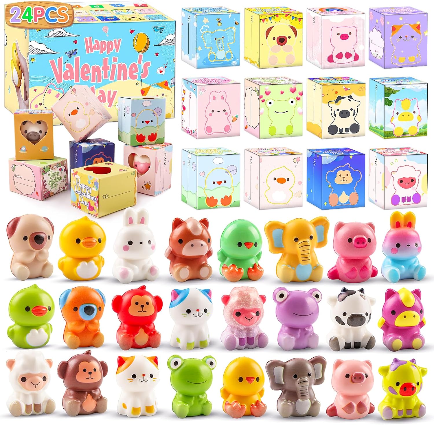 KissFuture Valentines Day Gifts for Kids 24PCS Animal Squishy Toys, Slow Rising Stress Relief Toys, Goodie Bag Stuffers, Party Favors for Classroom Prizes