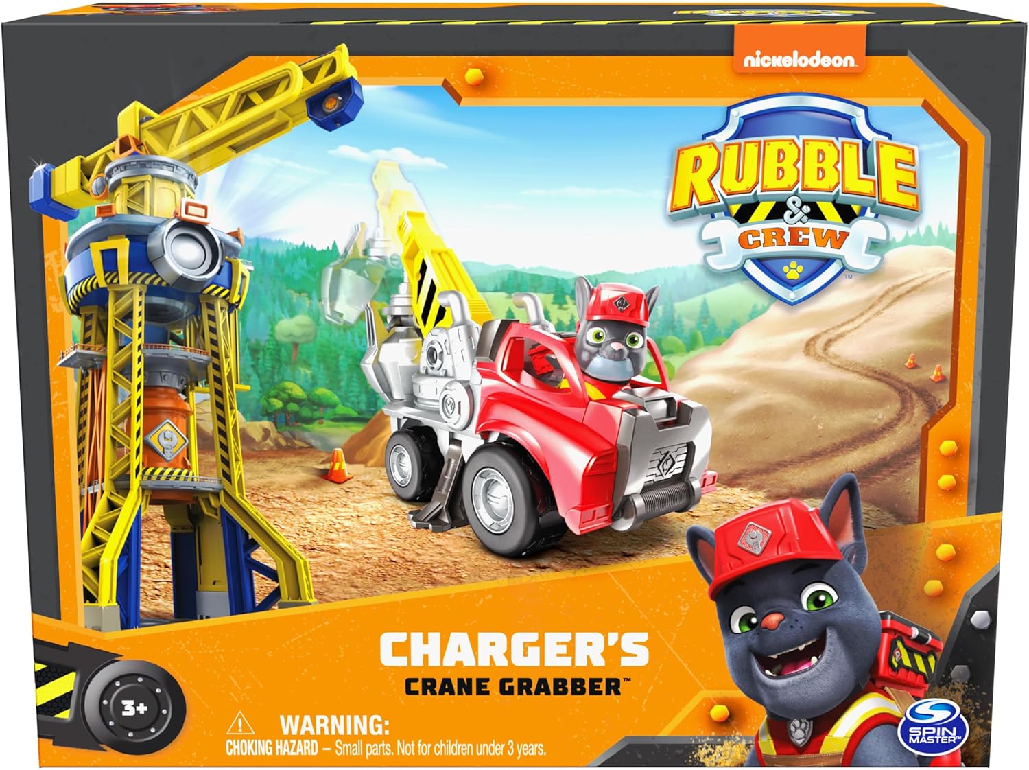 Rubble & Crew, Charger\u2019s Crane Grabber Toy Truck with Movable Parts and a Collectible Action Figure, Kids Toys for Ages 3 and Up
