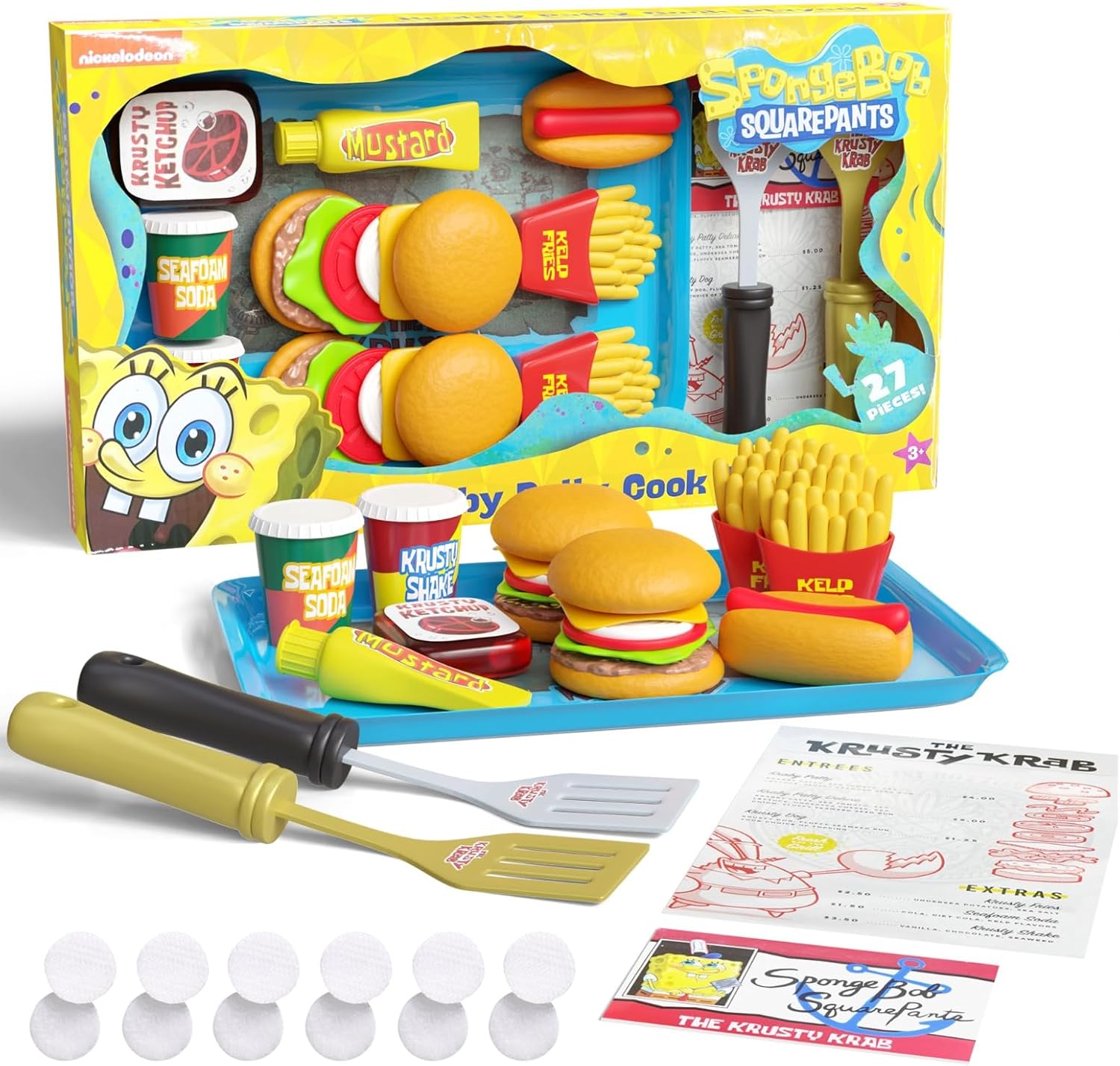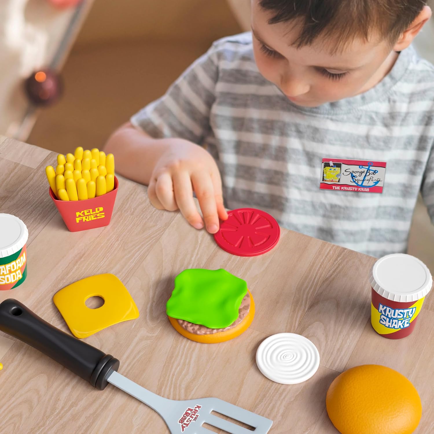 Spongebob Kids Kitchen Playset - Interactive Play Food with 2 Krabby Patty Burgers, Seafoam Shake, Kelp Fries, Spongebob Toys Kitchen Set for Kids Ages 3-5 Includes Velcro Dots quantity