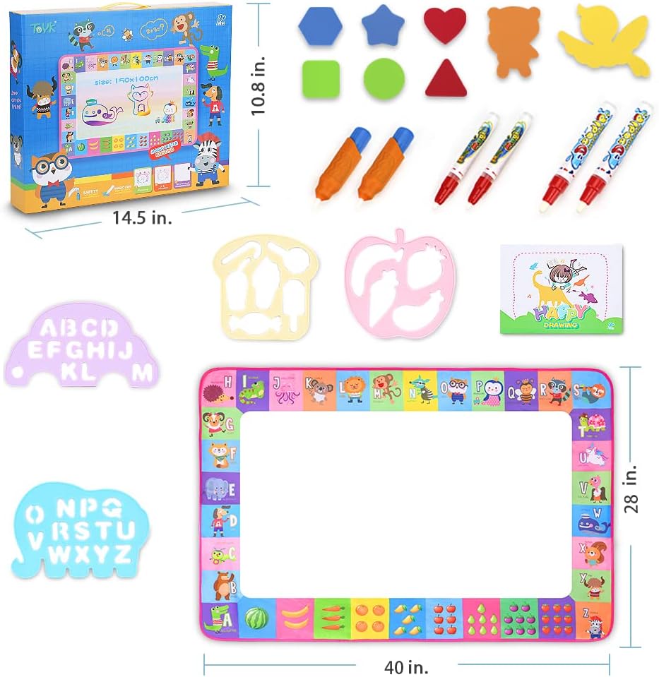 Water Doodle Mat – Kids Painting Writing Doodle Toy Board – Color Doodle Drawing Mat Bring Magic Pens Educational Toys for Age 3 4 5 6 7 8 9 10 11 12 Year Old Girls Boys Age Toddler Gift (Pink)